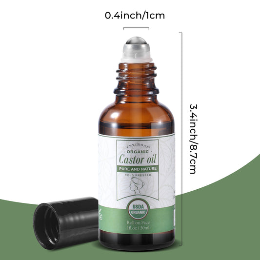 Castor Oil Roll on for Waist Belly Stomach Body Skin, Certified Organic Castor Oil Roller Stick Glass Bottle, Pure Cold Pressed Body Oil - 1fl.oz Medium Roller