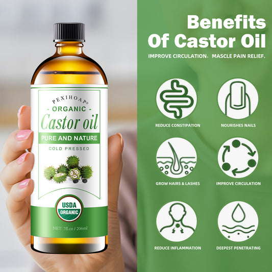 30Pcs Adhesive Castor Oil Patch with 7oz Organic Castor Oil Cold Pressed, Cotton Castor Oil Pack Wrap for Waist Back Neck Arm Belly